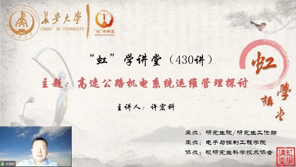 3月9日晚,由研究生院/研究生工作部主办、电子与控制工程学院承办、校研究生科学技术协会协办的“虹”学讲堂第430讲以线上讲座形式顺利举办。长安大学许宏科教授作了题为“高速公路机电系统运维管理探讨”的报告,相关学院共300余名师生参加讲座。